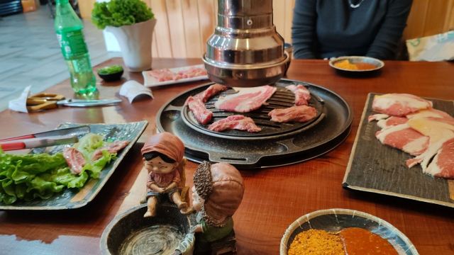 YoYo_7S9M8I9D住在云水澜庭,下楼就来到了这个烤肉店,没让人失望哦! 每个桌子都用隔板隔开,别人的烟熏不到而且有自己私密空间。猪五花厚厚的两边烤至金黄很香。牛五花很薄,肥牛的感觉蘸着酱用生菜包裹着吃,超美味,也不感觉上火。辣白菜炒饭好香,泡菜辣辣的,很开胃,东北米饭挺香的土豆饼超软糯虽然不太理解为什么上面有些甜品的小条条,但真的很好吃。大酱汤闻起来真的不太友好,但是吃起来有点辣辣的,而且冬天喝这个真的很暖。米酒是老板自家酿的非常推荐,一定要喝,真的有米的味道,非常棒哦服务也超级好,老板,老板娘真的人太好了,我们吃不完,就让我们晚点来,到时帮我们热热,真的太好了,推荐推荐 这里强烈推荐牛五花,自酿米酒