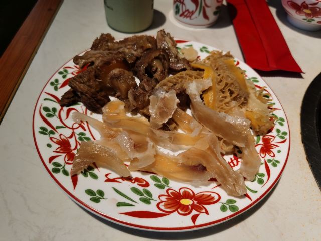 妍姐翡翠狗肉炖豆腐,刀切狗肉,辣白菜土豆,明太鱼,冷面都挺好的