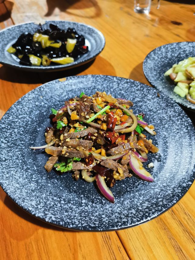 点了新派东北风双人套餐,是改良创新过的东北菜,特别推荐九州牛肠锅,真的太太太好吃了,牛肠处理的很干净,汤汁炖煮的入味,嚼起来Q弹软糯,一点都不腻,口感很好,再配上特色的酱汁绝了!本来我不爱吃肠类的食物,但这个真的力推品尝!! 小tip:浓郁的牛肠锅里拌上一碗米饭,软糯可口,给味蕾完美收尾!(最后和朋友两个人都撑的走不动道了.....)