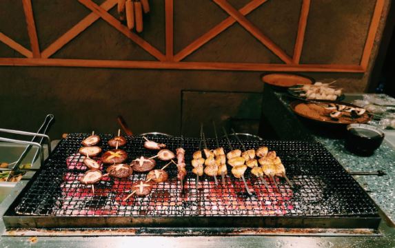 炭烤羊排,福冈牛肠锅,烤羊肉串,生煎焗柳根鱼,特色香草烤鸡,功夫豆泡,烤肉,明太鱼,大肉串,盐烤大虾,碳烤猪蹄,烤地瓜,铁板鸡蛋炒饭,黑松露焗海螺,碳烤猪排骨,锡纸烤明太鱼,烤韭菜,烤羊排