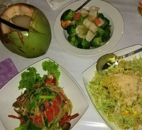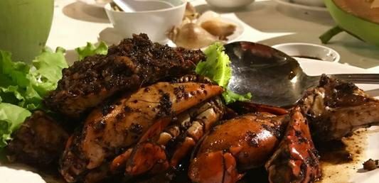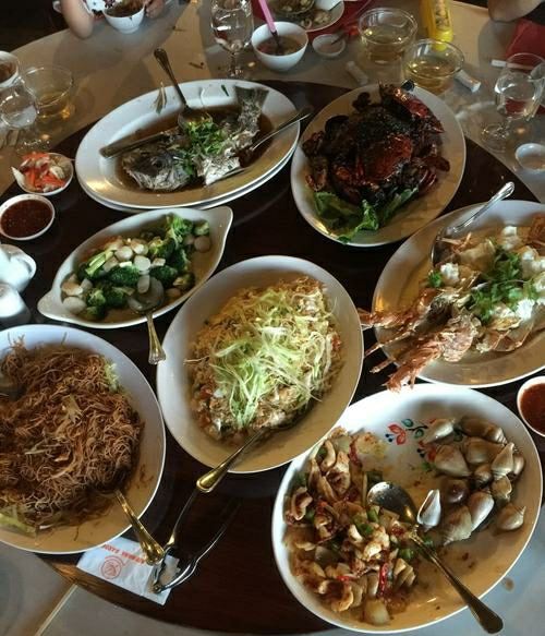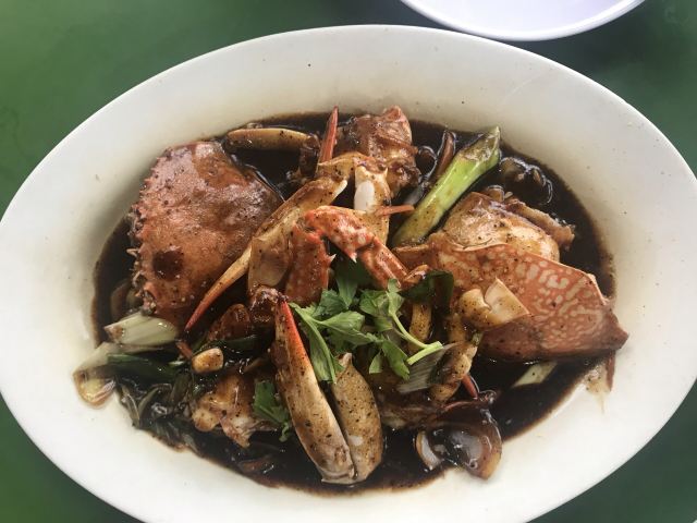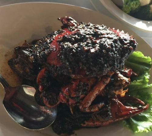 海蟹-黑椒味道,白灼贡贡,空心菜,海鲜炒饭,波士顿龙虾,黑石斑