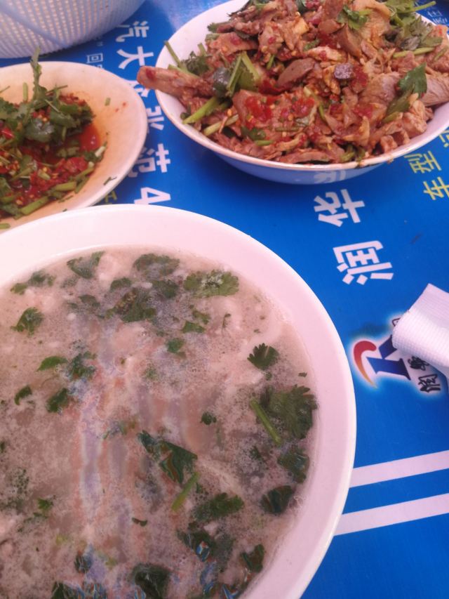 貌似枣庄第一羊汤馆,羊肉做的确定不错,只不过是清汤,自己加盐调味,汤往往不太热,只有花生米和香菜,花生米是水煮,不过羊肉很好。