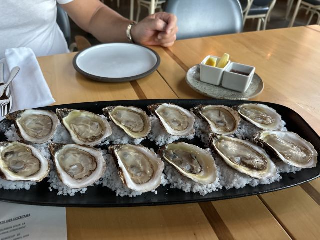 旅游度假餐馆不太好找打电话服务员出来领我们去的,服务比较热情店内不太大前菜比较小份,第一次看见意大利面就在碗底一点点,点的鸭肉有点硬鱼味道很棒生蚝和生牛肉味道都不错整体感觉还是不错的