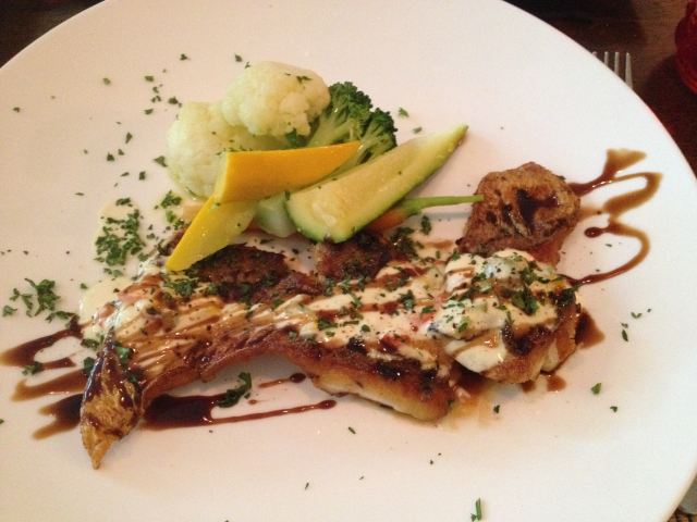 听到服务员的推荐,点了菜单中厨师推荐的牛排,电脑五分熟熟度把握的还不错,牛肉比较鲜嫩多汁。搭配的薯条,要另外收钱的竟然哦,