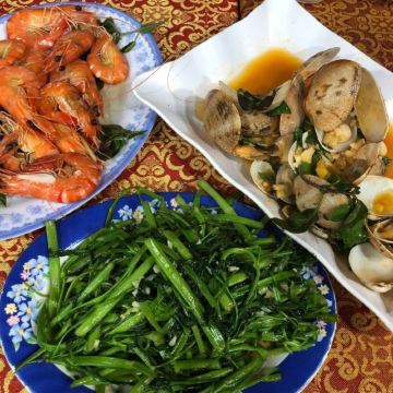 价格不错,没有短斤少两,很新鲜。第一天吃了龙虾两吃,辣炒花蛤,烤生蚝,炒秋葵。明天打算吃石斑鱼,皮皮虾。好几个服务员懂中文,生意也是这条街最好的。