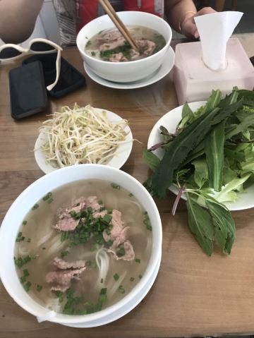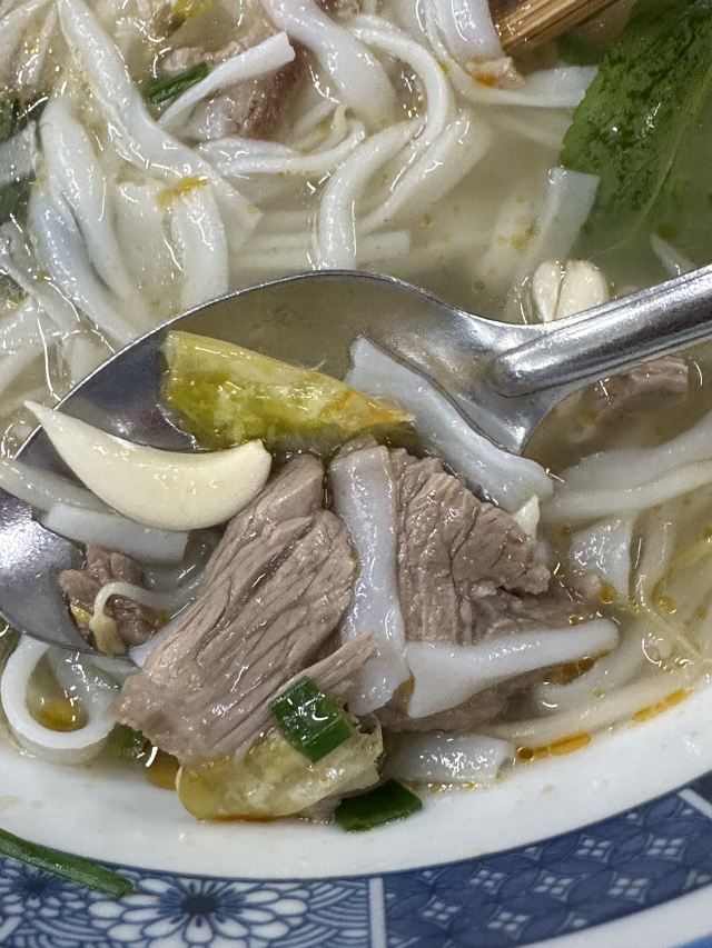 越南的河粉真的是好 价格又便宜 5万越南盾一碗 用料足 味道好吃 河粉滑爽 牛肉片比较多 不老 每天早上都会来吃一碗 喜欢