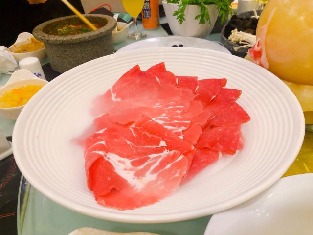燕郊最好吃的肥牛小火锅啊、店面很大、停车区充足,楼上有包间、楼下有自助小料区、还有免费饮料、但是不怎么好喝、蘸料不错、肥牛料很赞啊。涮菜的种类很多、肉类也很齐全,很新鲜,上菜速度很快、服务还不错、锅底都是小火锅、卫生又方便。虾滑好吃、大白菜都是白菜心、超赞,还可以吃到竹荪、一般的地方都没有啊。整体用餐感觉不错、好吃不贵。