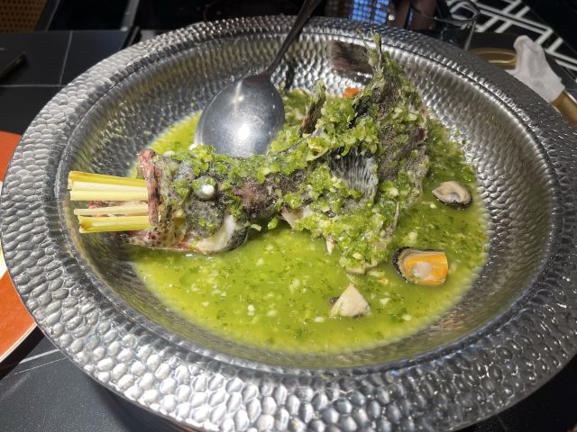环境:是在五店市湖边的一家东南亚菜品,外面是一些经典闽南建筑风格,外面风景宜人,设施齐全,还有很多小摊贩,都是一些闽南小吃,外面逛累了就可以到这家镶料用餐 【服务】服务做的很细心,点啥的都会提供好的建议,手机没有电就会有充电宝,说话啥的也不会很大声 菜品 高山娃娃菜鱼汤, 鱼汤炖的跟不错,一看就是炖的很久了,里面配料也很多,口感鲜美可口, 猪颈肉, 会有小哥拿出来讲解他的来源,制作方式,味道上也是可圈可点的,味道有些香料的味道口感丰富 鸡肉串 鸡肉很嫩,腌制的入味,主要是他的酱汁是很不错的,沙爹味道很正宗
