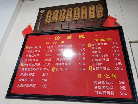 爆鱼面,酥肉面,鱼肉双交面,鳝丝面,来块素鸡,酱回蛋,双浇面,五花肉,双交面