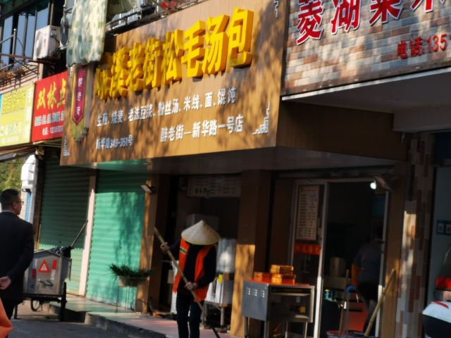 旅游度假埭溪松毛汤包是连锁店,有好几家,招牌都是黄色的字,容易辨认、记住。埭溪是湖州下面的一个镇,松毛估计是一个人名,就像杨大、诸老大一样。