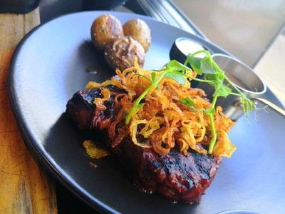 这家牛排馆离瓦卡蒂普湖不远,用餐时还可以看到美丽的湖景和雪山,景色很不错。餐厅主打牛排和烤猪排,分量都很足,价格偏高。