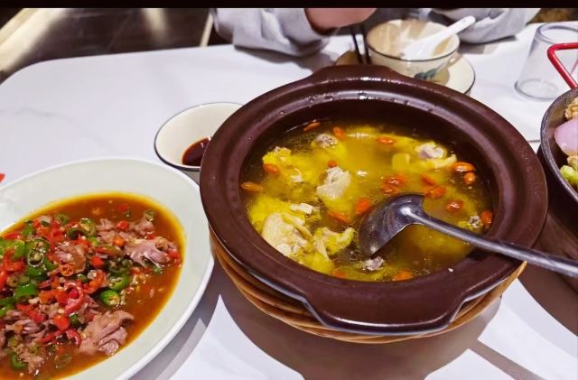 YoYo_7U6U8E0B这家宝藏餐厅真的被他治愈到了 知道吗?4月的安吉简直就是仙境呀,小众的赏梅地漫山遍野的梅花竞相开放,拍出超美的片子,来到安吉感觉到了古朴春天的古道两旁绿树成荫,还有这边的美食,我怎么能错过呢?阿露佳做足功课找到的! 竹香土鸡煲这个土鸡汤汁一定要安排哦,它可是慢火炖煮出来的相当有营养的土鸡汤喝起来挺鲜美的,土鸡肉也挺好吃的! 竹香豆腐包也是相当美味哦,豆腐做出来软软烂烂的,豆腐的鲜香干真是藏都藏不住,和浓郁的汤汁混合在一起,这分量也是足足的! 椒盐桑叶是蚕宝宝喜欢吃的美食了,酥脆可口的椒盐桑叶吃起来是挺鲜美的,而且它的分量也挺足的,孩子大人都爱吃! 对于这儿的美食总的来说没有踩坑,每一道食物都很独特,分量也挺足,用餐的环境很优雅,提前预定了包间,在这用餐别提多舒服了!