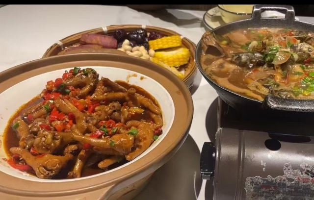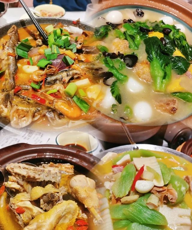 杂鱼煲,干锅黄牛肉,虾尾田鸡,虾尾鸡爪,椒盐桑叶,安吉鲜竹笋煲,肉沫小笋,茄子刚豆,脆骨豆腐中翅,竹香土鸡煲,椒盐皮皮虾