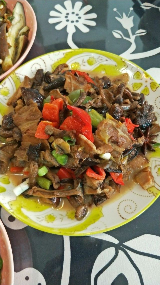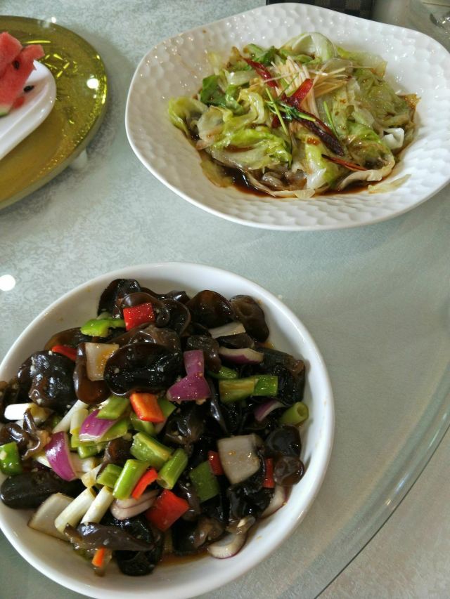 这家店爆炒小公鸡是很多农家乐饭店都有的一道菜,做法简单,但是吃起来却很美味。和农家小炒肉一样,做法上其实农家菜并没有什么不同,不过食材上的选择就不一样了,一定要是院子里散养的小公鸡才行。而且做这道菜,越肥的小公鸡做出来后味道才越好,所以大家如果去市场上挑散养的小公鸡的话,最好选择肥一些的。在炒之前,先要处理一下食材,小公鸡要提前剁成块,然后用热水焯一下血水。炒锅中放入适量的油后,下入一勺白糖和葱、姜、蒜等配料,香味出来后,就可以将切好的鸡块和青椒段一起下锅炒了。翻炒差不多十多分钟,就可大吃一顿了!呵呵!