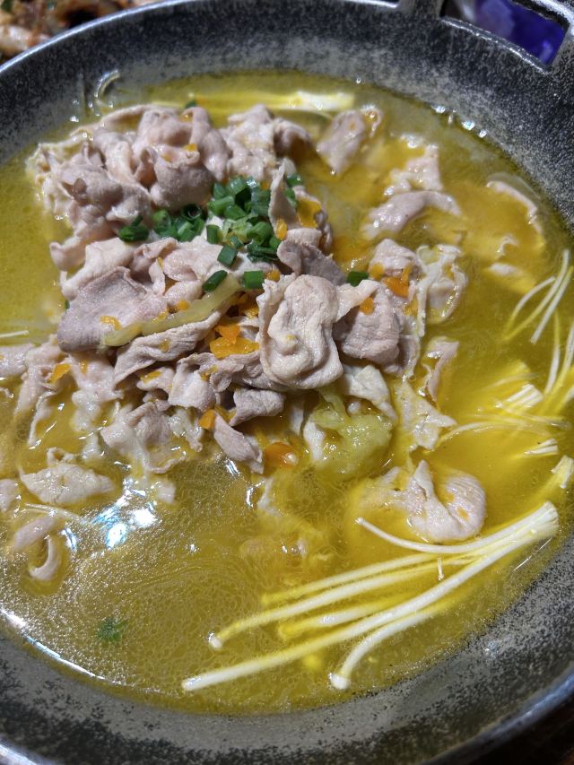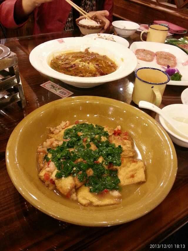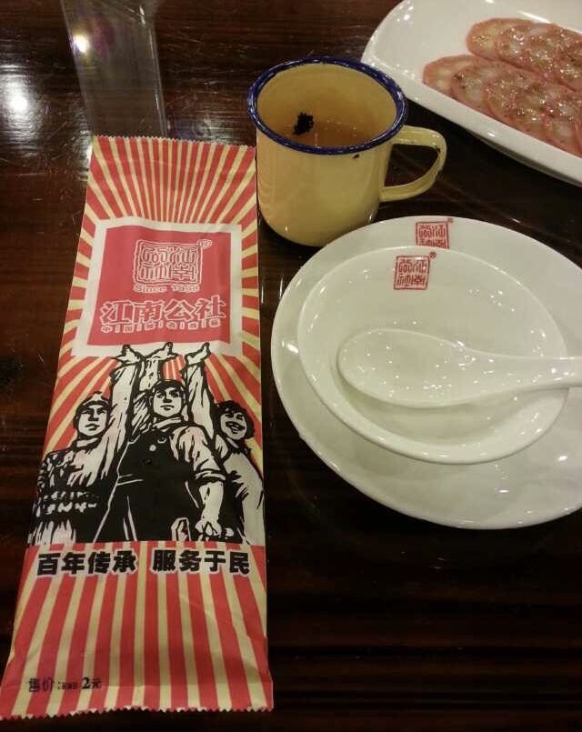 JIANGNAN COMMUNE江南公社,算是诸暨老字号的饭店店面还是很大的,里面座位也多。店员态度不错。 我们是过了饭点过去的,店里没什么客人。 手机扫码点餐,上菜速度挺快的。豆腐羹很美味,里面货料丰富,很快光盘。 凤爪凉菜味道可。 感觉菜色总体偏咸,酸汤肥牛Q,有些咸。肉感觉不是肥牛,差评不推荐。 蒸蛋还可以。 酸辣土豆丝,真的不是一般咸,但是店员态度不错,给我退了。 粉丝虾,感觉虾的新鲜度一般,味道可。 干锅包菜,吃到后面越吃越咸,包菜味道不错。 总体菜色味道偏咸,希望厨师改进下。