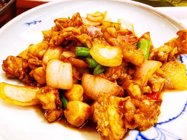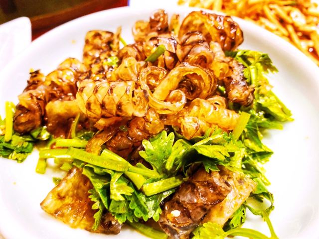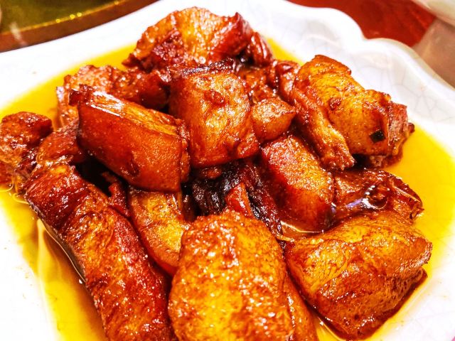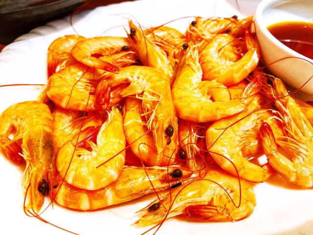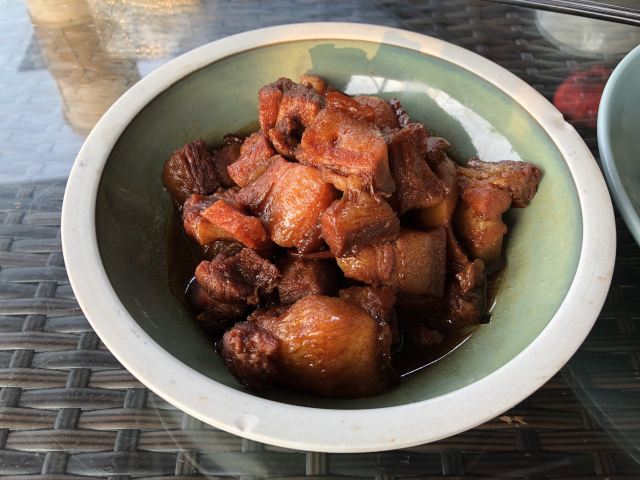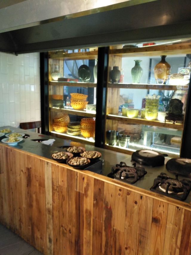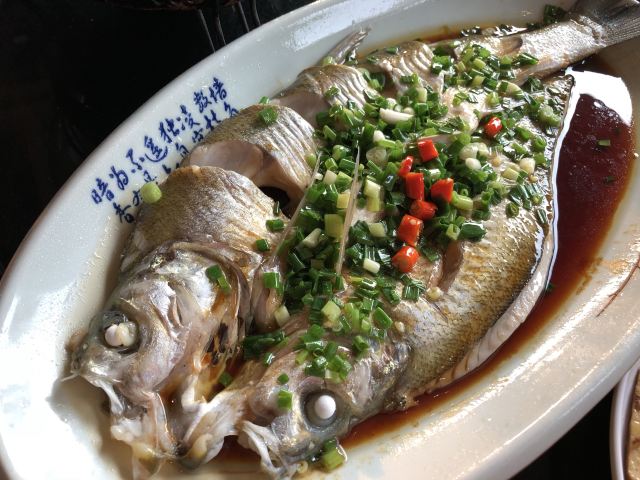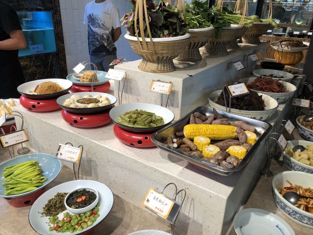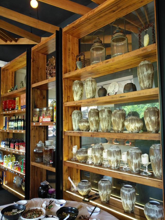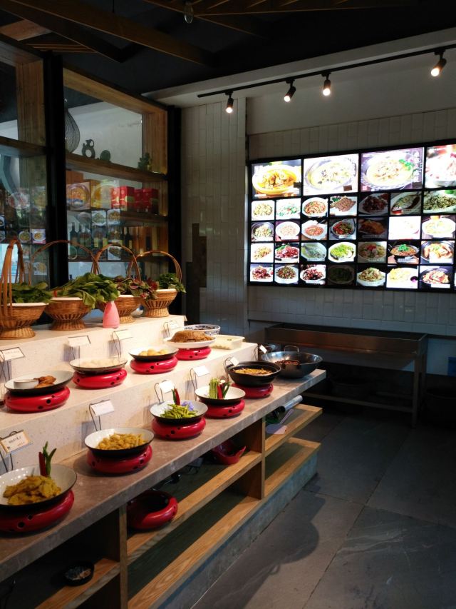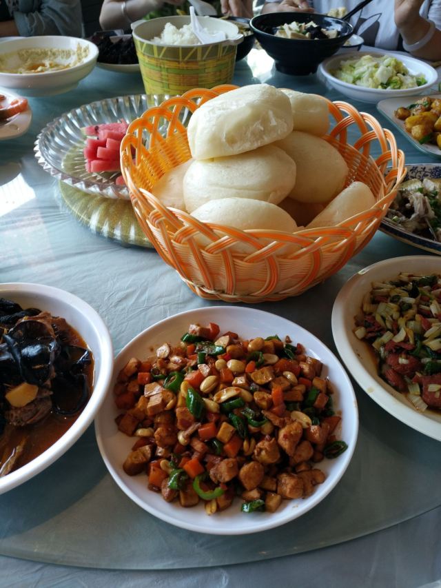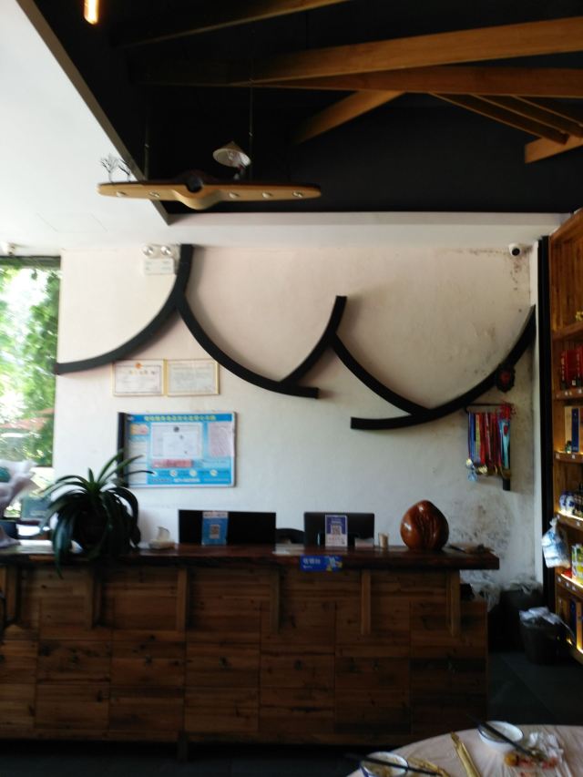 这家店看上去还挺高大上的,就是门头的字有点看不清,因为字是白色的,而背景也是白色的,所以那个名字要辨认好一会儿,建议老板能够改善一下。饭店装修还是有一些特色的,陈列了一些花瓶,不知道是不是古董。饭菜挺丰富的,馒头是当地特色,虾很新鲜,红烧肉的味道很好,整体菜的味道很合我们的胃口。