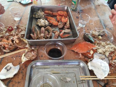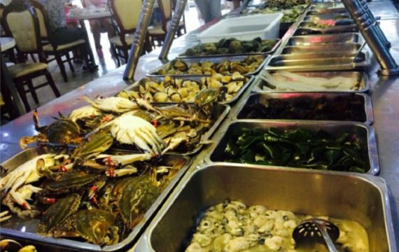 螃蟹,虾爬子,扇贝,大虾,飞蟹,黑蒜烤生蚝,海螺,鲅鱼饺子,鲍鱼,鲅鱼圈,渤海鲍鱼,布朗尼,开边蒸大虾,黄蚬子,鱼汤,炒虾爬子,玉米饼,生拌虾