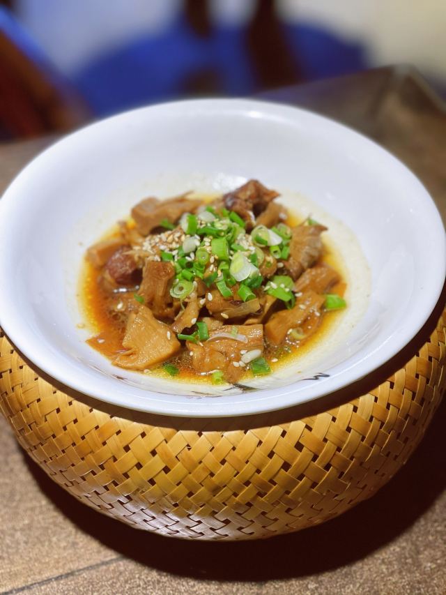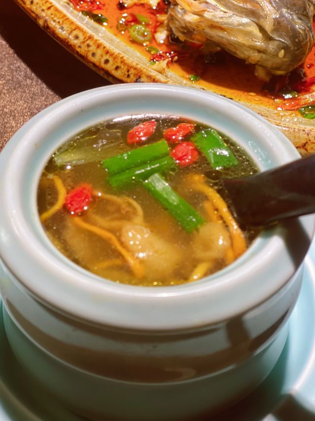横竖是二温小迪🌈花姐真的太让人惊喜了,这家私房菜就在和顺古镇内,我们买了两份单人套餐,餐厅给我们配了10个热菜,两碗鸡汤,两份甜品,还有玫瑰酒和饮料和水果。 🌿环境:餐馆开在一个带院子的老宅子里,都是包房,每个都挺有特色。 「燕窝桃胶银耳羹」非常棒!这个是最后上的,必须留着肚子来一碗。 「凤尾菇」这个菜以前没吃过,没想到炸过的菌菇也那么好吃。 「蒜香鱼」肉质鲜美,一点没有腥味,味道也非常好。 「菌菇炒腊肉」这个也挺好吃的。 「姬松茸炖牛肉」牛肉很酥,味道也好。份量两个人吃正好。 「松茸菇」滑嫩的口感,鲜美的味道,一口接一口,简直停不下来。 「猪皮冻」qq的,爽口中又带着韧劲。 「清炒南瓜苗」这个蔬菜是第一次吃,有丢丢像青菜,比青菜嫩,很好吃。 「玫瑰酒」还不错,略带甜味,真有玫瑰的味道。 「猪肉缅甸笋」这个笋吃起来有点像水笋,但是形状又不太一样,挺嫩的,也挺好吃的。 「养生鸡汤」鸡汤吃完可以续,里面除了鸡,还有虫草和菌菇,味道略淡,但是很鲜美。 「八宝饭」我没吃,小伙伴非常喜欢。 👩🍳服务也超棒!热情的不行。一直在问我,菜怎么样,要不要再加几个。实在是太好客了。