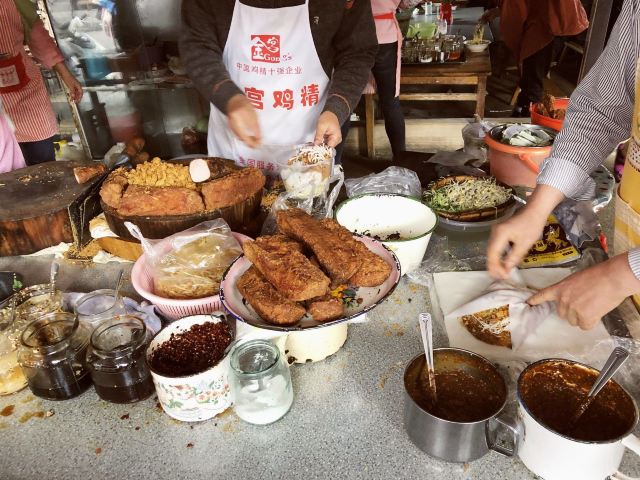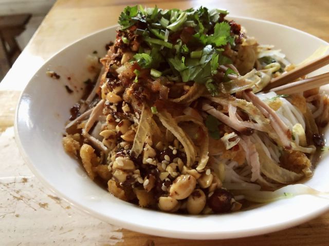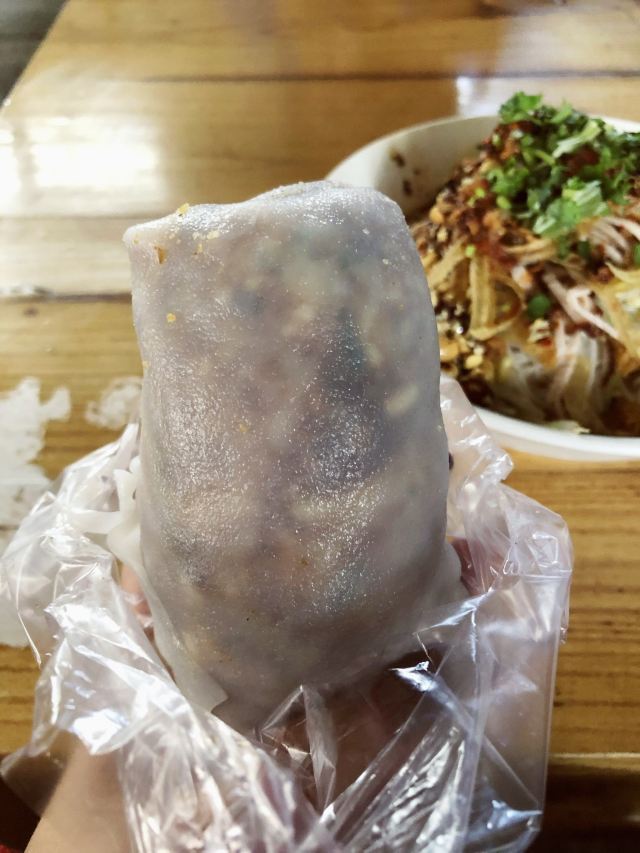特地找过来的明记烧肉米线,就在恒邦购物广场对面的小巷子里,正巧学生放学一下小店坐满了人,生意很旺的哈! 可以选择烧肉米线或者烧肉卷粉,都是现做的,米线和卷粉都是凉的,比较爽口也更适合夏天! 烧肉米线可以米线和卷粉各要一半,一次尝到2种味道,店家很热心的帮忙调味好,口感酸甜爽口,非常的开胃,米线入味,卷粉有韧性,都不错哦! 烧肉卷粉一个很敦实,里面有很多脆脆口感蛮丰富的! 晚上6点多小店就差不多打烊了,要吃美味要趁早哦!