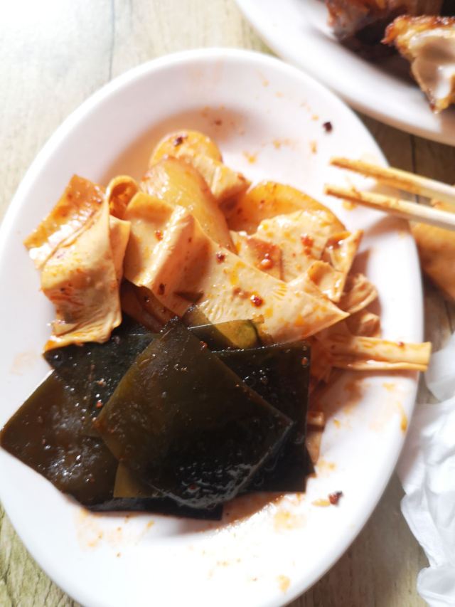 店面不大,猪蹄外焦里嫩,好吃不贵。推荐菜色:烤猪蹄,烤鸭脚、鸡脚、豆腐皮、土豆。