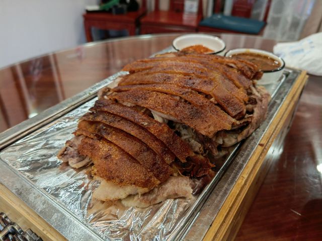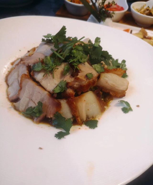 去了西董,订得晚了没有台,第二轮才可以,已经8点过了,让餐厅小姐姐介绍的烤乳猪,介蓝,韭菜,饵块炒西红柿,几个菜都好吃,乳猪是我吃过最好吃的一家,值得一吃。 用餐环境好,令人愉悦,打算明晚再去