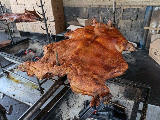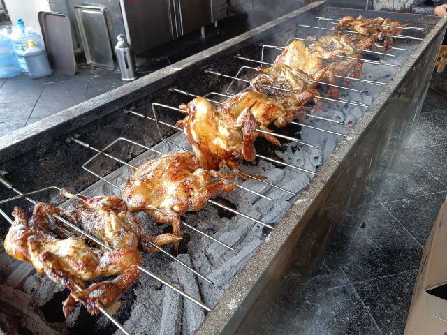明光烤小耳朵猪,西董秘制炭火烤鸡,干呗土豆丝,大救驾,西董家酸辣鱼,雕梅小排