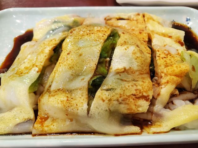 Haoyidianchangfen Restaurant (niannianfeng)出差钦州,顺道来了那么一餐 感觉还不错,点了一份鸡蛋肠,两人份鲜虾牛肉肠,一份鸡蛋叉烧肠,还有玉米饼,肠粉味道爽滑。 肠粉就是觉得酱油有点下多了些许[难过]; 玉米饼原来是鲜玉米做馅的,而非玉米面煎饼; 总的来说还不错,环境也可以