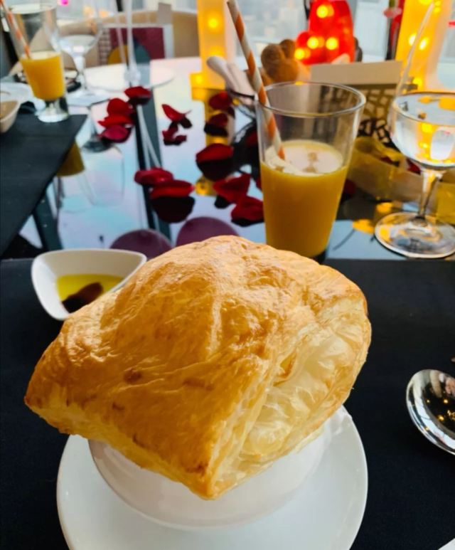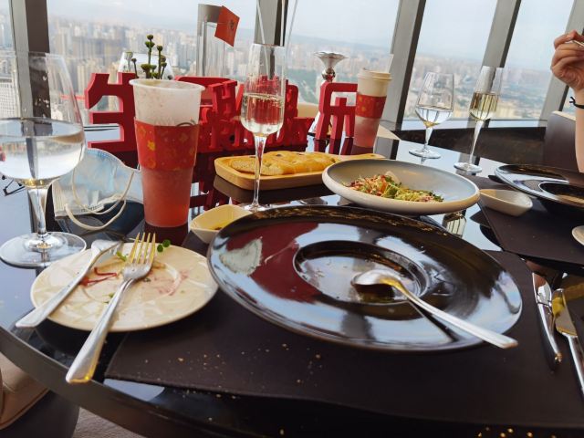 鸿鹄志在酒店的第51层,大部分的餐饮味道挺好,特爱"酥皮汤"、奶油蘑菇汤、香煎鹅肝、牛排和三文鱼,因挺好吃的。 环境也挺好因可俯瞰西安,无障碍的远眺南山和周边的美景。 服务热情周到。 早餐是160.00,午和晚餐视点什么,比较贵。