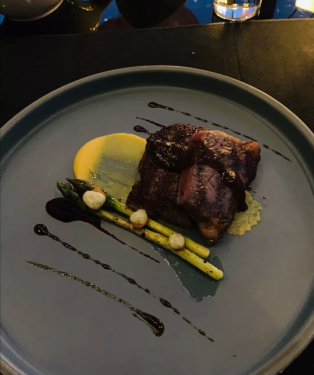 B&G51 RESTAURANT前菜,蟹肉沙拉鱼子酱,非常喜欢的一款,蟹肉紧实,品质很好,鱼子酱鲜嫩清澈的口感,非常新鲜。 主菜,澳大利亚和眼牛排,肥瘦相间,非常非常棒,口感鲜甜,鲜嫩多汁,意犹未尽。 甜品,栗子茸蛋糕,口感绵密,非常精致的甜品。