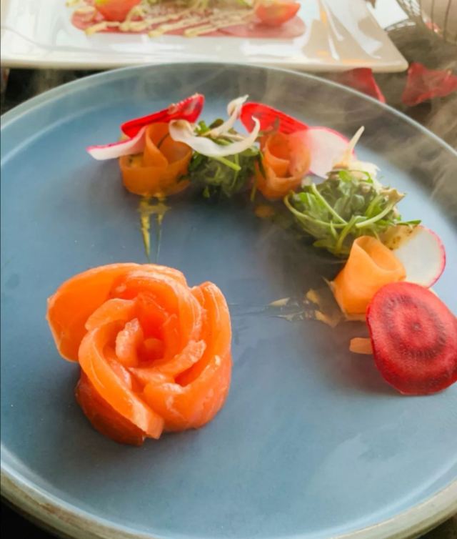 香煎鹅肝,玫瑰烟熏三文鱼,赤焰战斧牛排,澳大利亚和牛眼肉5级,暗礁生蚝,黑松露鸡汤,B级西冷牛排,火爆辣鸡香蒜披萨,8级和牛牛排,意面,龍蝦,苹果派,大西洋黑鳕鱼,健康绿茶西柚杯,香煎龙利鱼,酥皮汤,三文鱼沙拉,甜虾刺身,野菜沙拉,巧克力兵马俑,巧克力蛋糕,水果沙拉,蛋奶杯,鹅胸,南瓜汤,西班牙火腿,瓦伦西亚海鲜饭,芝麻菜,意大利饺子,土豆泥,烟熏三文鱼,海鲜饭