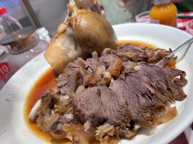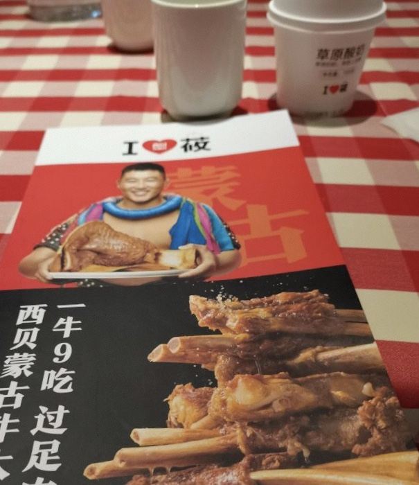 位于西安赛格国际购物中心7楼,店面在有些角落的地方,但是丝毫不影响他的生意。 门口等座的人也多,取号到号会叫。店员很热情,小朋友还送了围兜画纸。团购了一个套餐,感觉分量十足。 酸辣金钩白菜,酸爽微辣,很是下饭 单点了蒙古牛大骨(牛棒骨),一份还是很大的,里面的骨髓不是很多。牛肉切成片,牛筋和牛肉的完美组合很是好吃。 黑猪肉烩豆腐和西贝面筋也不错,新疆大盘鸡分量也足。 让我惊艳的是黄米凉糕,因为太好吃,所以吃完才想起没拍照。 草原酸奶质地浓稠,奶味十足,好吃好吃。
