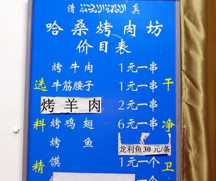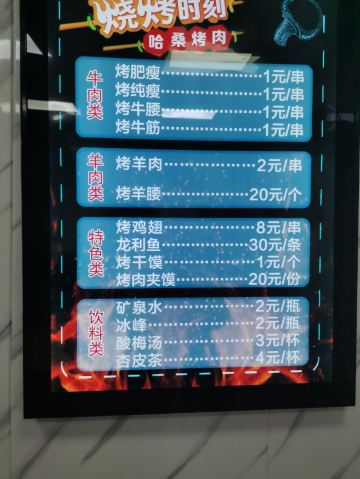 烤腰子,烤油馍,烤鸡翅,烤牛筋,羊肉串,牛肉串,剁椒蒜蓉烤鱼,龙利鱼,酸汤水饺,秘制牛筋,泡馍,烤肥瘦,烤羊肉,杏皮茶,肉筋,烤干馍,锅盔,饺子