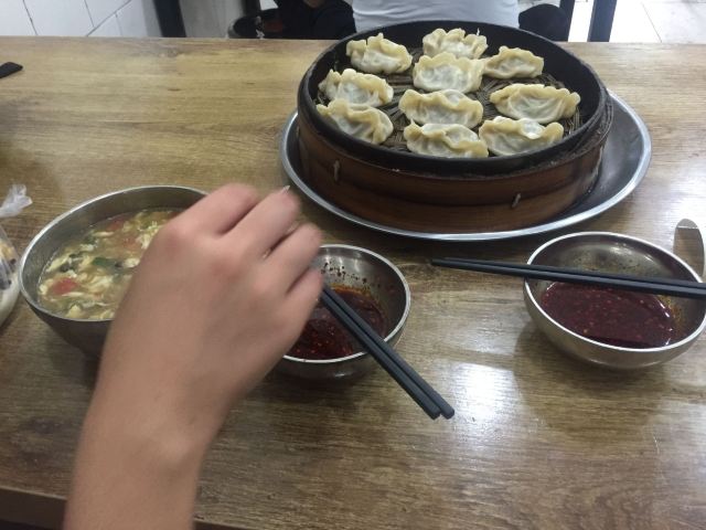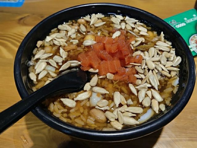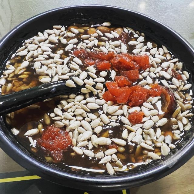 吴青芸从沙金桥地铁站 一路步行进去 一路上都是好吃的 买了个小团购 因为需要留肚子 多吃点不同的花色 饺子🥟(团购里是招牌牛肉,因为价位相同,和小姐姐申请了 韭菜牛肉)馅儿里有新香料 味道不错 蛮喜欢的 一蒸屉 有10个 他们家的秘制八宝粥 有点意思,满满的内容,甜度也不错 刚好~ 粥里 米不多 感觉类似于 藕粉的东西 烧的厚厚粘粘的 ,美味 加 暖胃~ 凉粉 也是蛮Q弹的 味道不错