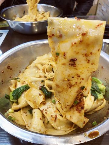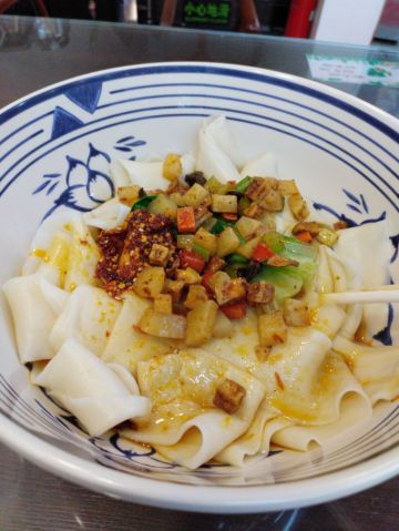 推荐biangbiang面和油泼面,味道还是很不错的,宽面很筋道再配上油泼辣子,真的是太香了!辣油是很香的,不是很辣!