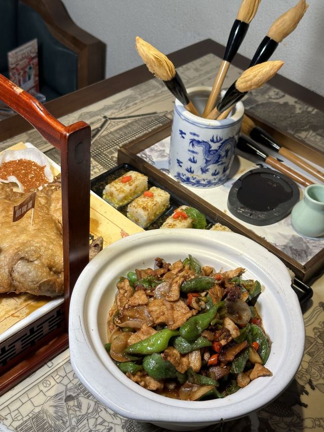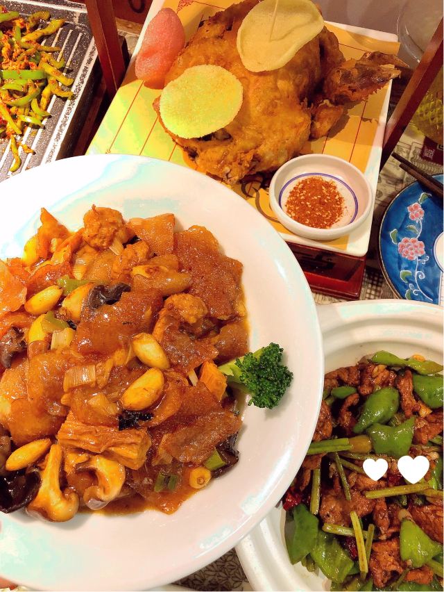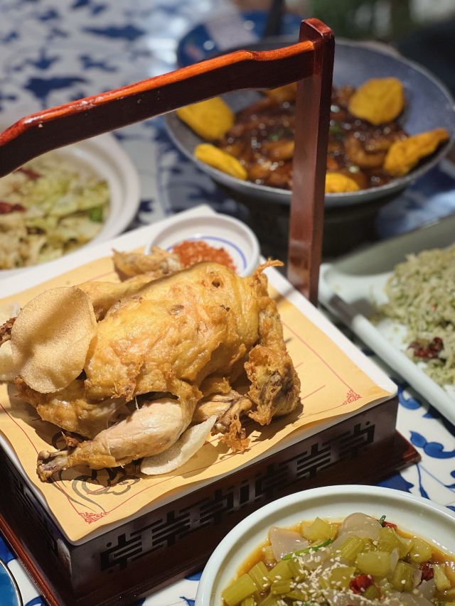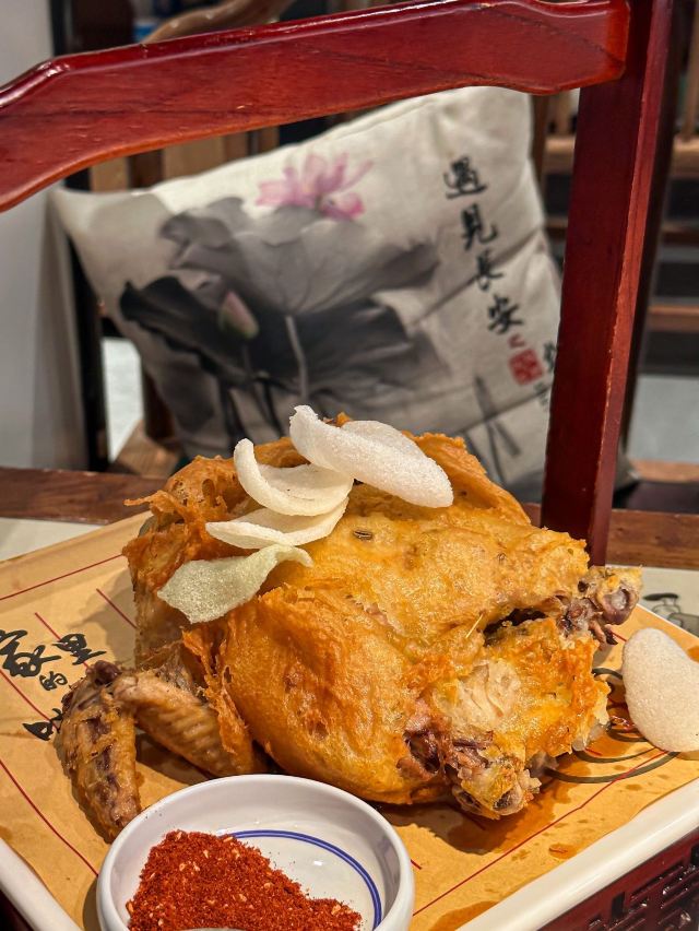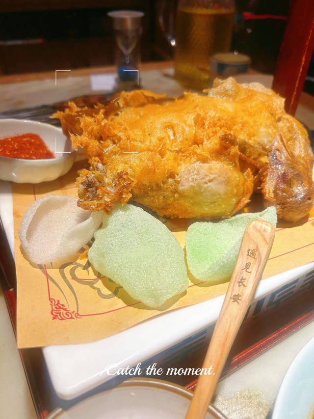 Yujianzhang'an (silufenghe)陕菜不吃个5678次都不敢再次推荐!真的太感人了!!! 吃个家常菜,让我这个长期在外地奔波的西安孩子竟然想家了,年底跟家人聚餐一定会选他们家,古风的环境让人觉得用餐很惬意,离家超近,性价比完全没有对手!! 毛笔酥外焦里糯,创意十足 真的提现了老长安文化的底蕴源远流长。 葫芦鸡这道菜以仔鸡为原料宽油复炸 既保存了肉质的鲜嫩还感受到了脆皮的咔吱咔吱 色泽金黄,造型独特 形似葫芦,寓意吉祥 桂花黄米凉糕用糯米和小米交织 桂花酱浓稠缓缓淋在糕体上别提有多诱人了 临走之前还拿到了我最喜欢的公仔容嬷嬷哦 果然还是在自己家乡特别开心风水养人~