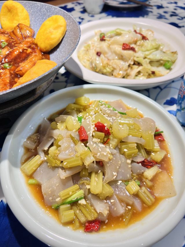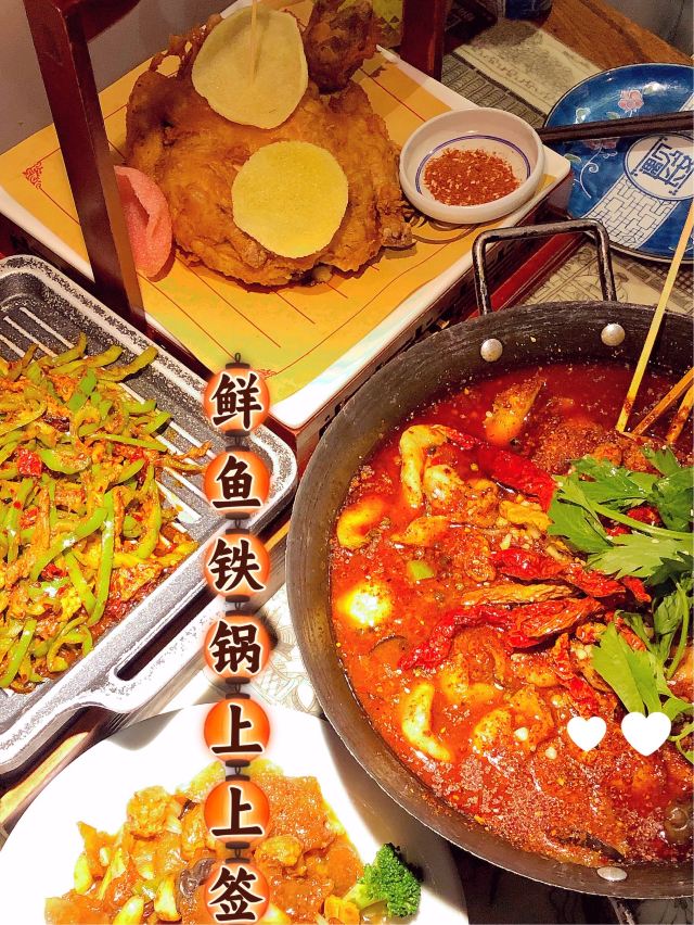 南京市民毛猫🔥这家遇见长安排队的居然都是本地人 🆘好夸张,这家遇见长安大中午就排队,而且排队居然还都是本地人~ 遇见长安现在店🉑真多,各大商圈基本都有,不过就算这样,到了中午还是坐的满满当当的~ 在门口排队的时候,听见旁白的大哥用陕西话给朋友介绍:服务好,便宜有量大,关键还好吃! 这可难怪啦~ 🍗【遇见葫芦鸡】 看了一下,果真是每桌必点的菜品,现炸的香酥可口,蘸着秦椒面,香香~ 🥘【老陕烧三鲜】 我妈的最爱~这道菜属于咸香口的,里面有西安人最爱的炸橡皮和腐竹,是一道米饭杀手菜~ 🍲【鲜鱼铁锅上上签】 这个不用多介绍,一上来红彤彤的一锅,鱼片都是没有刺的,吃起来特别过瘾~ 吃下来一大桌子,人均才💰60,这也太划算啦! 反正就算排队我下次还来~