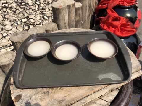 淡淡的米酒吧,没什么度数,院里混熟的喵星人都想尝尝味道。非常有趣的游戏,要一口干掉,然后用力摔碎,要拿出梁山好汉的气势