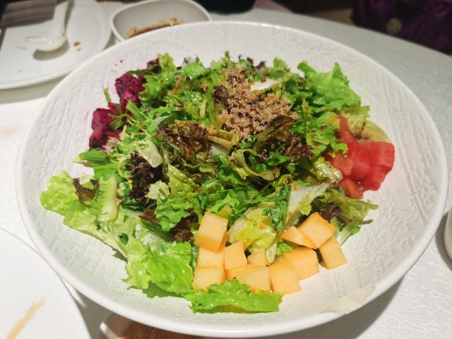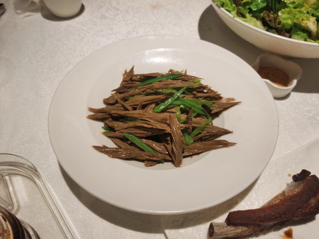 食神牛这次西安行程中最不满意的饭店,店铺重新装修过格局也有了变化,除了地理位置优越,坐在大厅或包间就可以欣赏钟楼夜景。其他真的比较失望,饺子味道跟7年前完全不能比。 三鲜水饺被别桌拿走催了很多次才送上来,要碗饺子汤始终以很忙为由不给拿。 芳香排骨98元肉很敦实焦香酥松味道蛮有特色的。 兰豆黑腐竹32元绵柔鲜韧滑爽香咸。 服务员始终忙着推销充值拿提成,把优惠夸得天花乱坠但是实际只能用于买酒,而且不充值马上翻脸, 西安酱牛肉76元腱子肉带筋比较酥松咸香。 缤纷纤体养生菜38元菜蔬脆爽果粒甜润浇汁鲜甜。 荷塘月色98元摆盘造型很漂亮精致,还会讲解一下文化历史背景,甜口的饺子有山药、椰蓉、榴莲味 的。 牛肉韭黄水饺32元肉馅酥松多汁,韭黄鲜香牛肉味蛮派。 春虾蒸饺42元汤汁有点油腻,虾仁不新鲜混合着肉馅都有点腥气。 红糖锅盔26元面壳松软带点焦香,红糖馅细腻香甜。 招牌三鲜水饺29元家常口味没啥特色。
