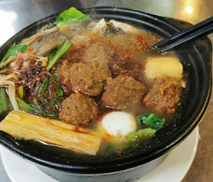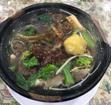 西安当地朋友推荐的一家店 砂锅种类比较多 价格从20左右到80多都有 看自己喜好点就可以 点了一个丸子米粉砂锅 丸子就是牛肉丸子 汤的味道挺好 有一说一 跟回民街大部分千篇一律的泡馍店比起来 价廉物美很多。