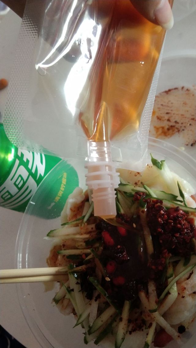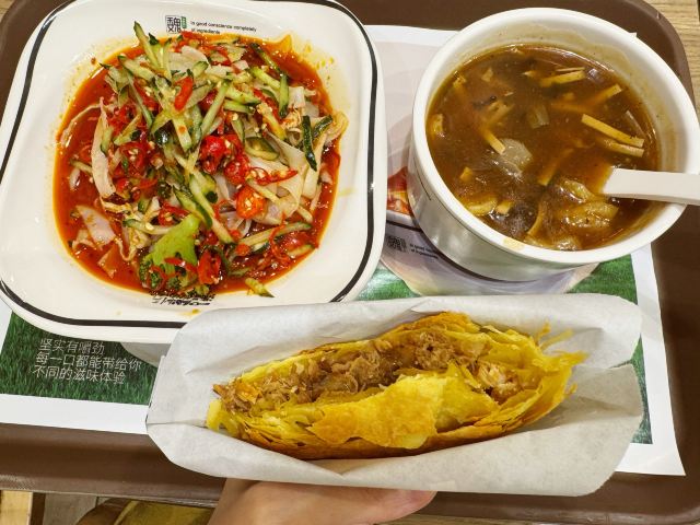 总体还不错吧 秘制凉皮很辣很辣很辣 个人觉得一般的辣都能ok,但是这个是真心辣,不能吃的小伙伴不要轻易尝试,胡辣汤一般,肉夹馍味道不错