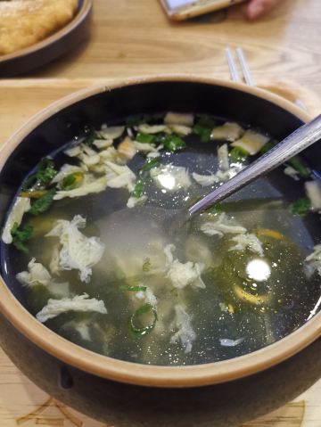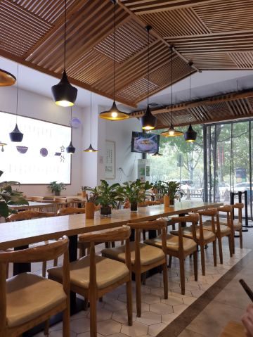 舍外小餐厅干净整洁,他家的油炸牛肉饼好吃,油饼,还有豆腐脑,各种简约汤,蒸面 。只有豆腐脑,蒸面是健康食品。早餐吃还不错。