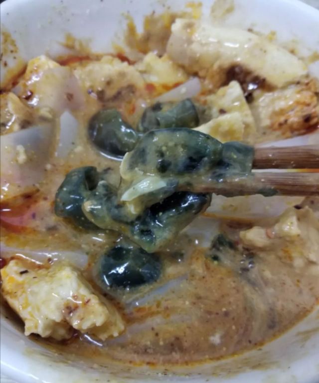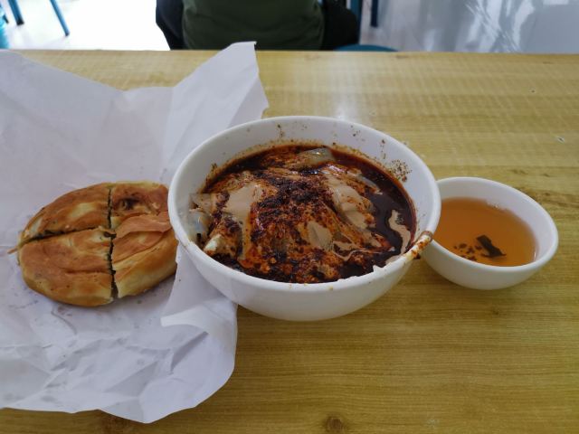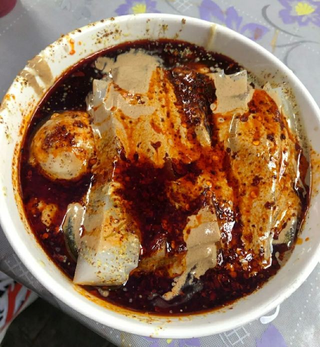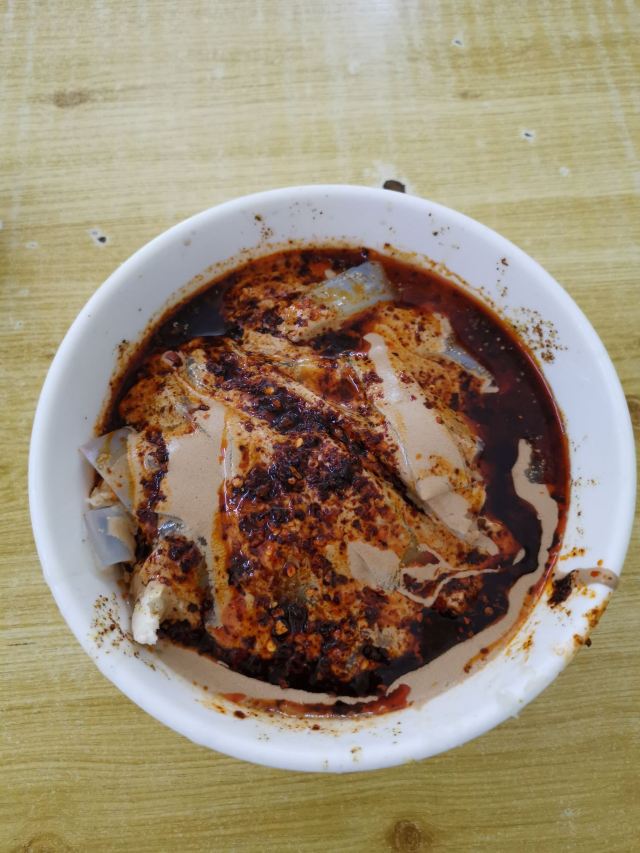 几年没吃它们家的卤汁凉粉,今天去省中医医院路过宏顺祥,顺便吃上口西安的黑暗料理“卤汁凉粉”。味道风格一如既往,可能是生意好,卤汁凉粉的品相学来越差。要的双蛋,卤蛋,扒皮鸡蛋跟狗啃似的,切双蛋也该讲究和保持传统刀法。放好调料,也递碗也该给买主把碗边擦干净。生意好,更应该讲究服务技巧和意识。