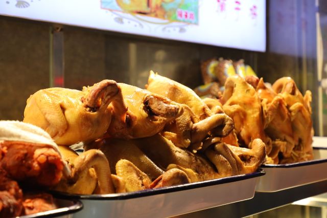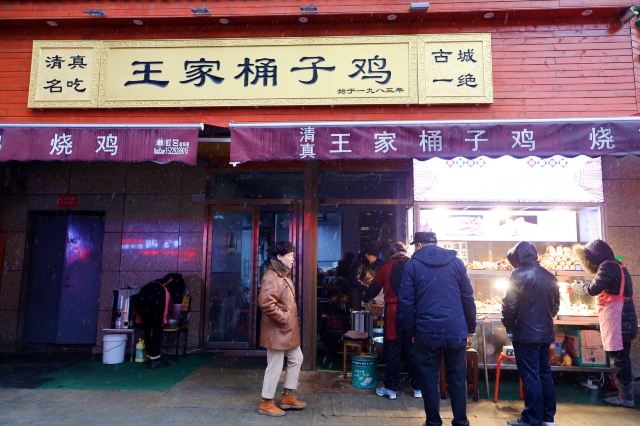 Qingzhen·wangjiatongzi Chicken王家桶子鸡位于东新街168号;从83年就已经开始卖,一直到现在;听说每天能卖桶子鸡就将近300只;这对于我来说真的是一个很大的数字了!他们家的评论一直都是差异比较大的,喜欢吃的真的特别喜欢,不喜欢吃的一点都不喜欢! 他们家的鸡选用的是三黄鸡,色泽鲜黄,肉质鲜嫩;Q弹的鸡皮跟软烂的鸡肉,搭配的刚刚好!不光是整只鸡在卖,零散的还有鸡爪、鸡胗、鸡腿这些;现切的鸡肉再浇上一勺卤的汁水;诱人的味道就从这里体现出来了!每次路过他们家,人总是会很多; 这里只能够打包带走,不能够堂食!