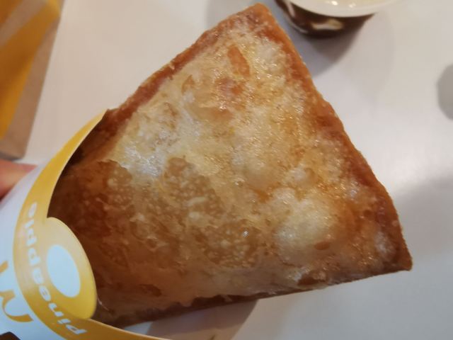 McDonald'spineapple pie菠萝派,一直是麦当劳的经典甜点小食,果酱稠稠的,丝滑绵延,酸酸甜甜。这么多年,一直是这个味道,暖暖的,超好吃。