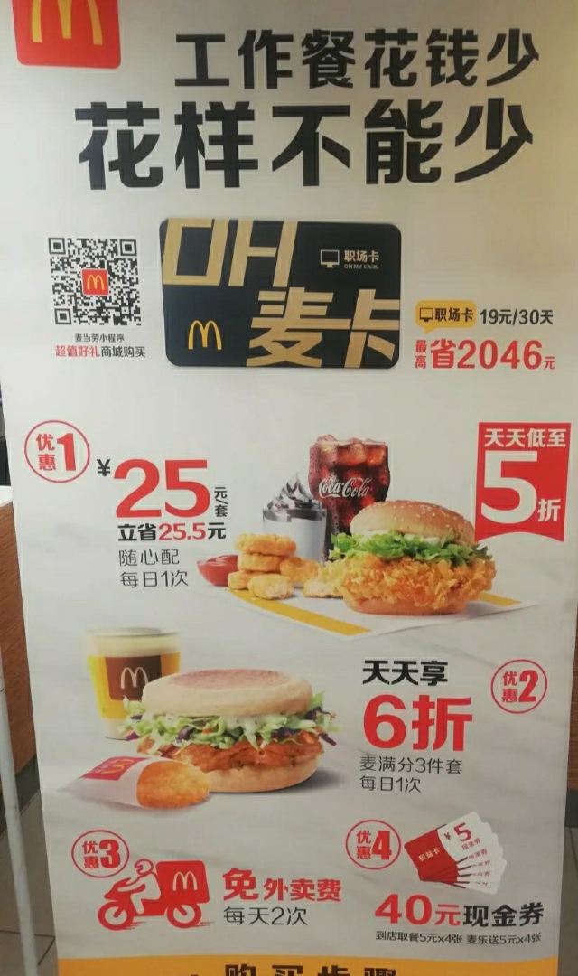 甜筒,麦辣鸡腿堡套餐,巨无霸套餐,干脆可可麦旋风,咖啡,麦辣鸡翅,那么大鸡排,香芋派,经典麦辣鸡腿汉堡,奶油坚果酱蛋牛堡