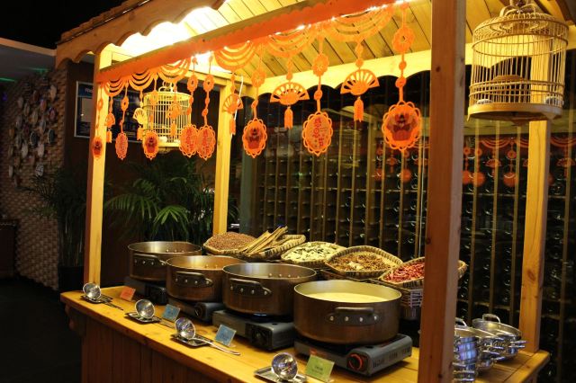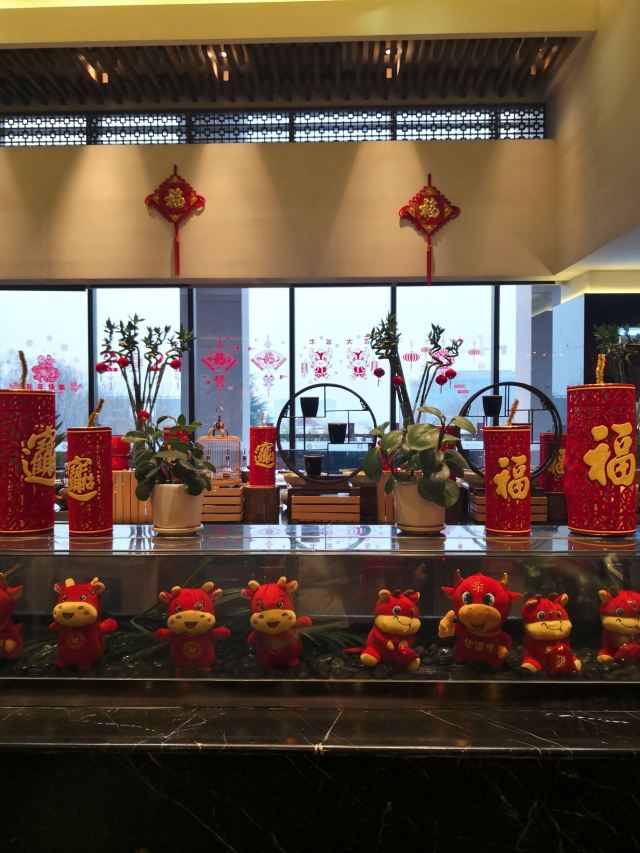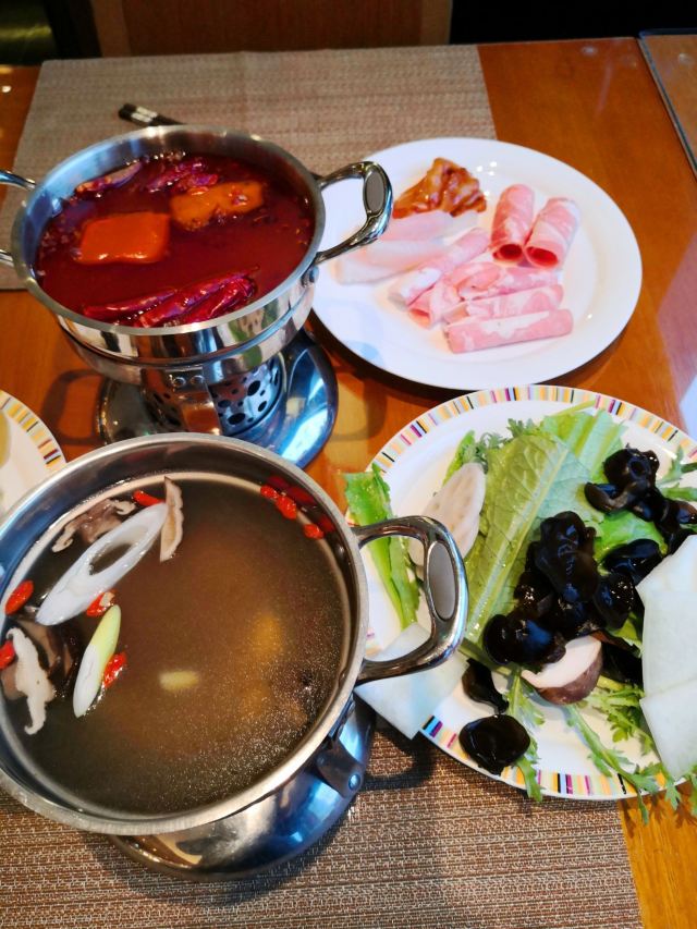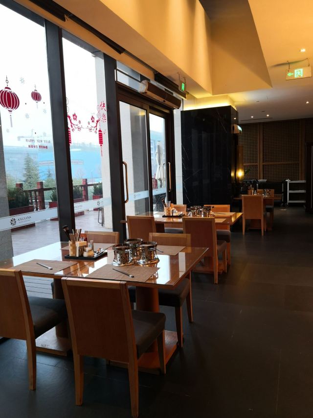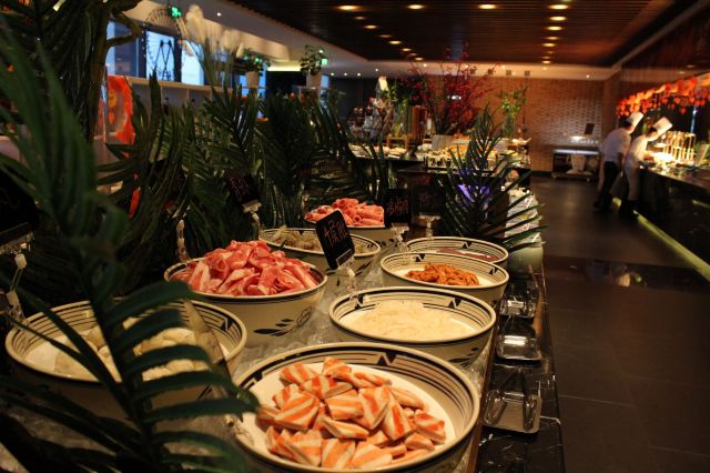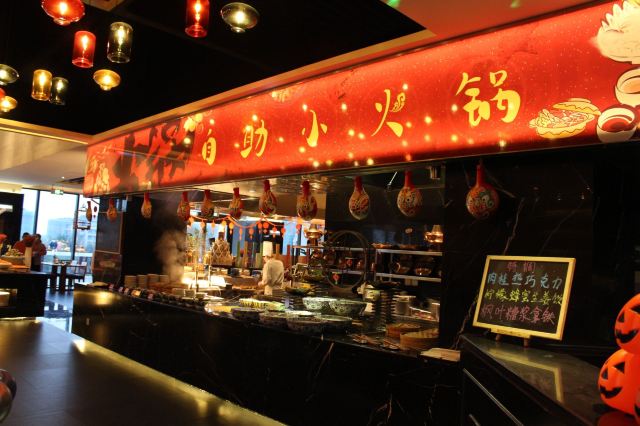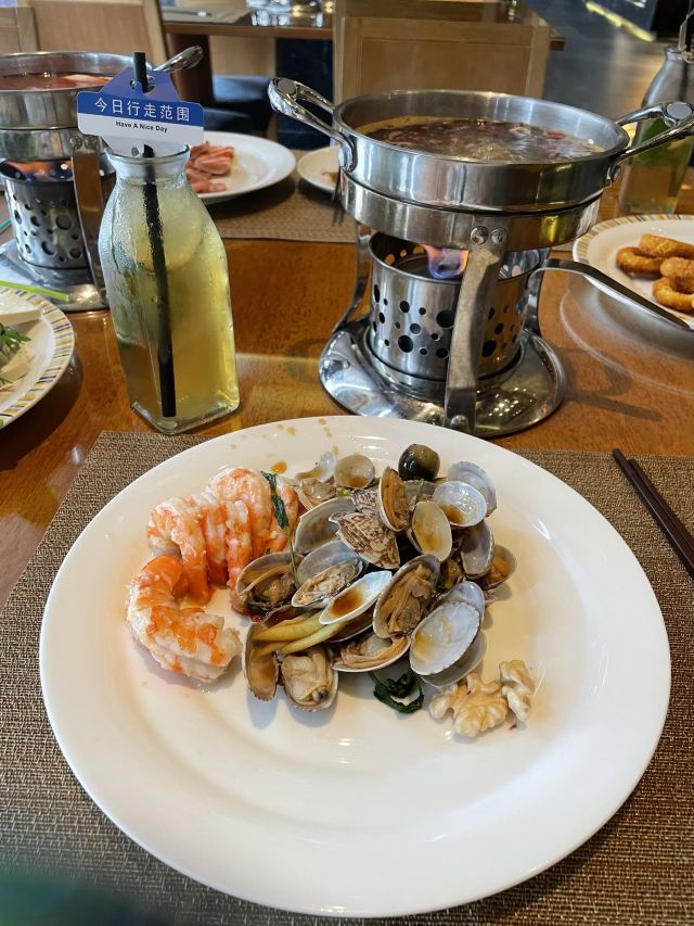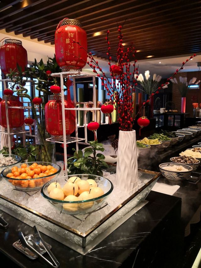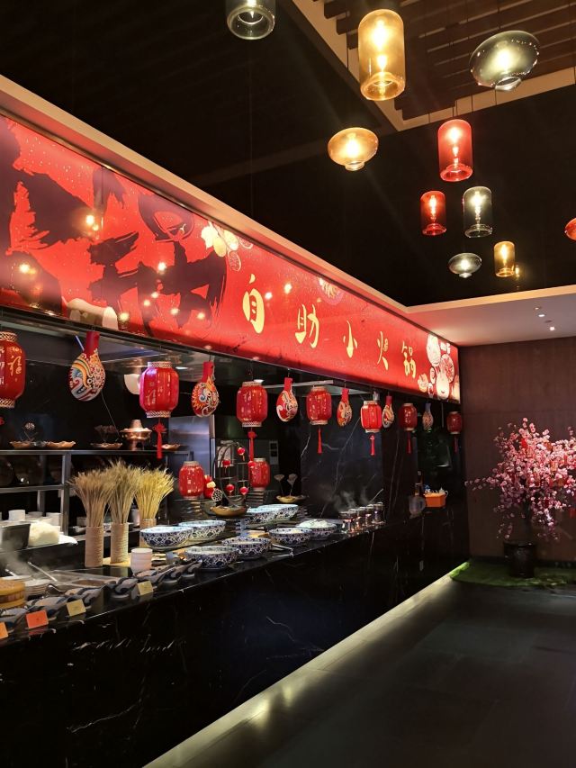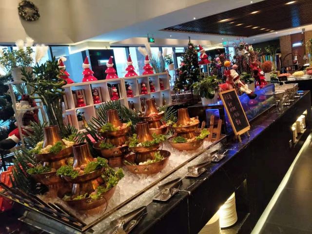 环境非常的棒,布置很有新年气氛,红色为主调。。现在冬季把原来的自助餐改为了小火锅。麻辣锅差点意思,菌汤锅还行。菜品新鲜,蔬菜特别嫩,下锅开了赶紧起来。肉类海鲜类不太多。最后冰淇淋很好吃,特别是榴莲味的。