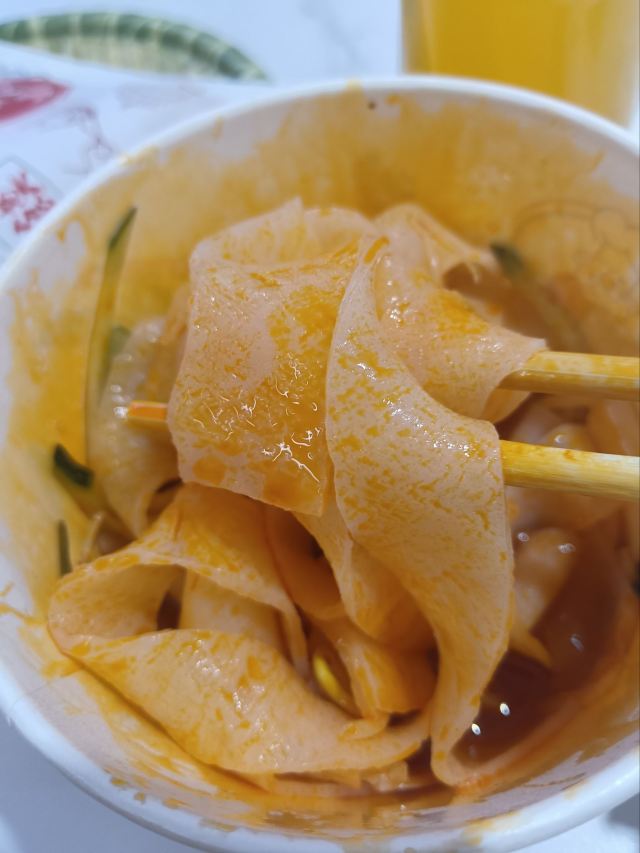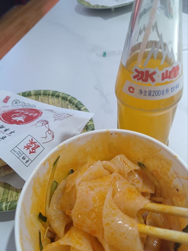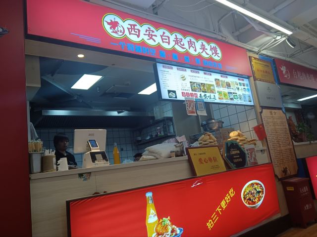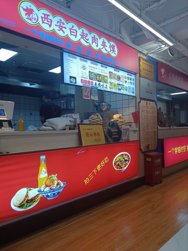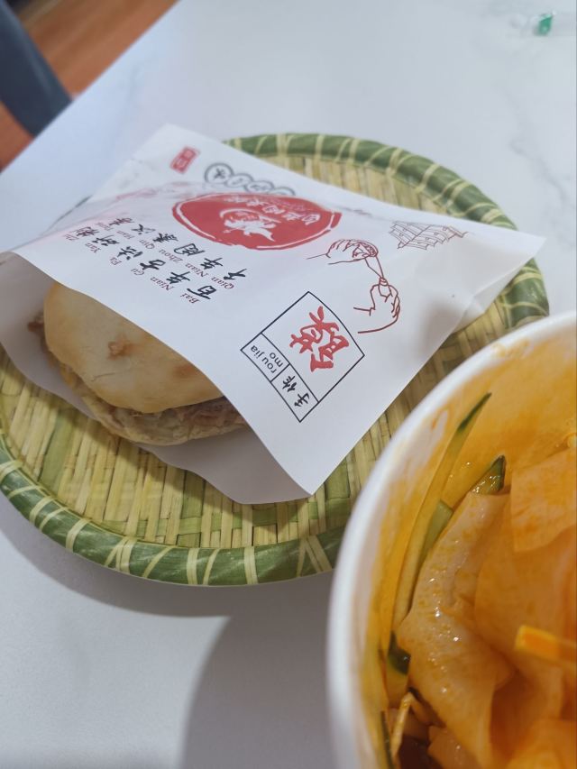 在钟楼附近转,想去回民街吃点东西,但是考虑到可能需要排很久的怼,就随意找了一家!先垫垫! 店铺门店不是很大,也说不上有啥服务把,服务员调好了,自己拿,一口香肉夹馍很小一个,有点出乎意料,单价一个八元,确实贵了! 味道还可以吧!! 随意吃一口还可以!