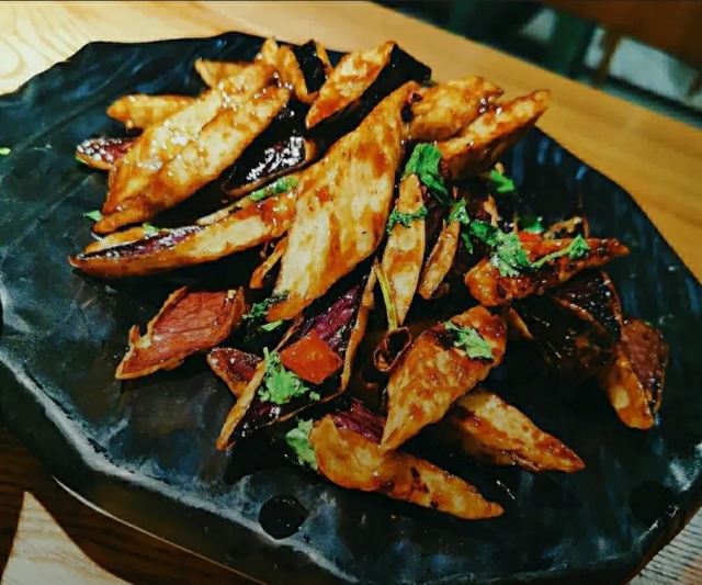 就在曲江大悦城四楼,屋顶花园。周边环境不错,服务还可以,比较贴心,菜品还比较有特色,风味茄子,薄荷牛肉,红薯丸子,都还挺不错的。