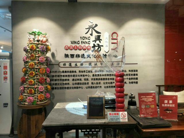传说中永兴坊十大美食: 1、关中biangbiang面 2、泾阳石子馍 3、陕南炖菜 4、宁强核桃馍 5、汉中热米皮 6、子长煎饼 7、彬县御面 8、镇巴炕洋芋 9、柞水洋芋糍粑 10、绥德黄馍馍 可惜中午吃太饱,晚饭只能说来体验陕西食文化环境与氛围。永兴坊高新店实质是一个文化馆的概念,路线与馆文化的设计还是与期望值有些差距。