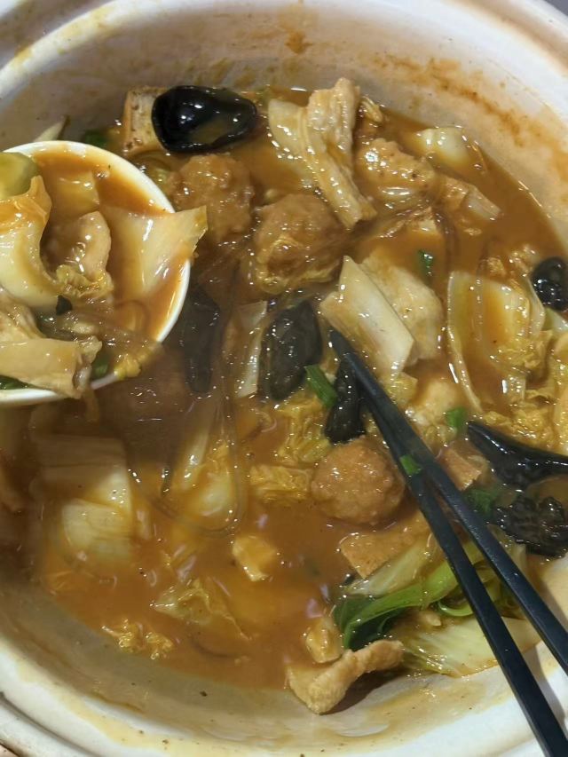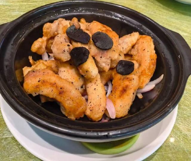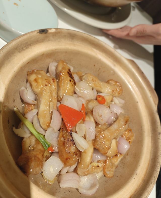 YoYo_2S4S8G4P🌟口味:5星 🌟环境:5星 🌟服务:5星 来粤芙中餐厅打卡,被啫啫走地鸡煲和丝瓜煮鱼馥彻底圈粉! 先说说啫啫走地鸡煲,砂锅里端上来还滋滋作响,鸡肉选的是走地鸡,肉质紧实弹牙,一点不柴。搭配红葱头和红椒提香,酱汁裹满每一块鸡肉,咸香中带着微微的焦香,吃起来超入味,连配菜都被抢光了! 再尝丝瓜煮鱼馥,奶白的汤底看着就鲜,丝瓜煮得软嫩却不烂,吸饱了汤汁的清甜。鱼馥滑嫩细腻,入口即化,汤底鲜而不腥,喝一口暖到胃里,清淡又解腻,和鸡煲搭配着吃简直绝了。 粤芙的环境是雅致的中式风格,包厢安静又舒适,服务也很贴心,全程添茶换骨碟都很及时。不管是家庭聚餐还是朋友小聚,这里都太合适了,下次还会再来刷其他菜品!